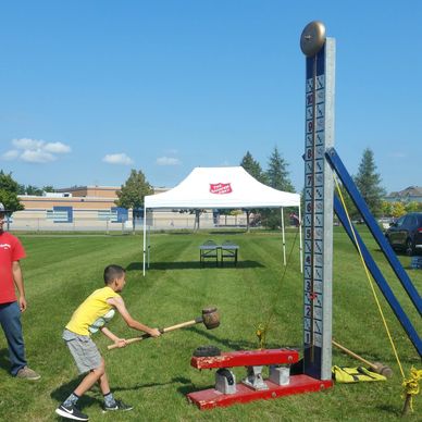 Swing the hammer and try to ring the bell! The perfect Olde Tyme Carnival atmosphere. A challenge for kids up to grade 8, and great fun for the rest! Nothing’s as satisfying as hearing that bell go DING!.