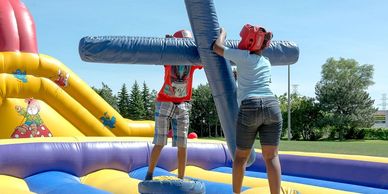 Step onto the giant air cushion, grab your foam pole and try to whup your opponent right off his/her feet. Loads of raucous fun for participants and onlookers alike. Most suitable for ages 8 and up. Can be operated indoors or out. Ideal for any fun event where friendly competition is the name of the game!
