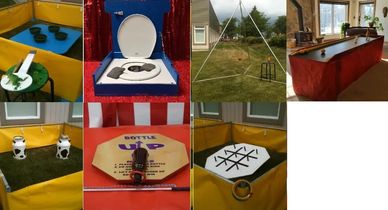 Flipping Frogs, Milk Jug Toss, Ring Toss, Stand the Bottle, Potty Toss, Swingball and Table Bowling.