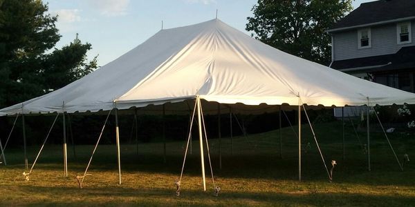 (Pictured is a Hexagonal tent(center) with two 20x20 foot tents attached)